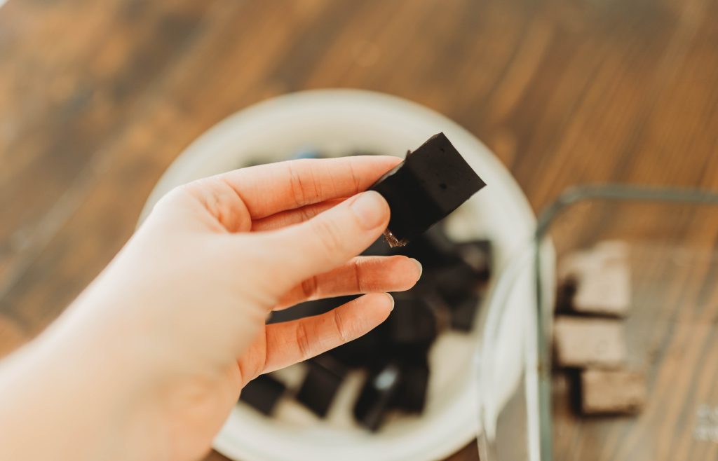 activated charcoal gummies on white plate